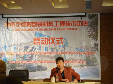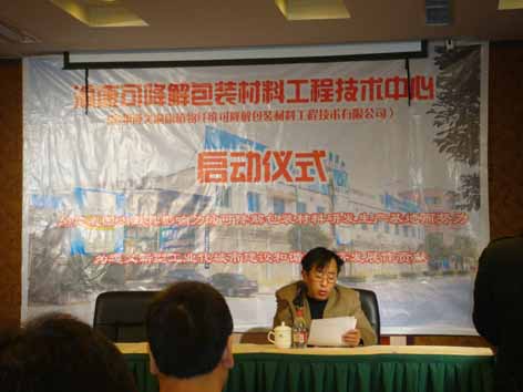 在贵州省、遵义市各级政府部门的推动下,由冰球官网与遵义市大康绿色产品有限公司联合组建的“贵州遵义渝康可降解包装材料工程技术中心”,于2008年10月26日上午,在遵义大世界酒店举行了隆重的启动仪式。